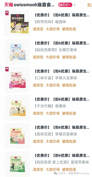 主页配料表显示,原味草莓蓝莓黄桃这几个口味有添加赤藓糖醇(代糖)和低聚果糖(益生元),可能是考虑到部分宝宝的通便需求?添加量也不会很高,可以按需选择口味。